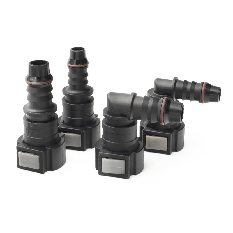 High flow SAE 9.49 Quick Connect fitting with Viton O-ring. SAE J2044 standard fittings for high flow and maximal functionality and durability. Safe for all fuels, including alcoholic fuels such as ethanol.