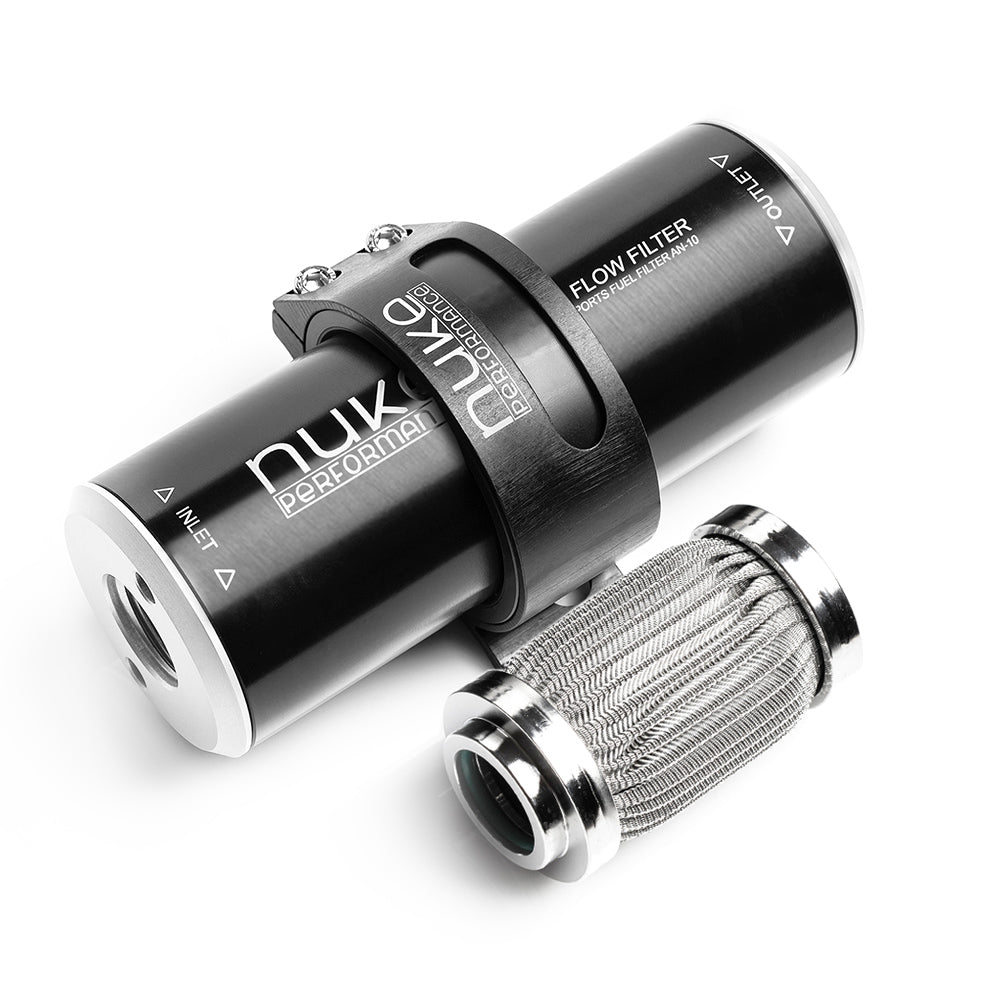Nuke Performance also offers the same fuel filter inserts in a series of fuel filters with integrated brackets, same functionality in a nice and functional design with integrated stainless steel brackets. And for those who need a fuel filter with higher flow capacity, greater filtration area, Nuke Performance offers the Nuke Performance PF200 10-micron high-performance fuel filter.