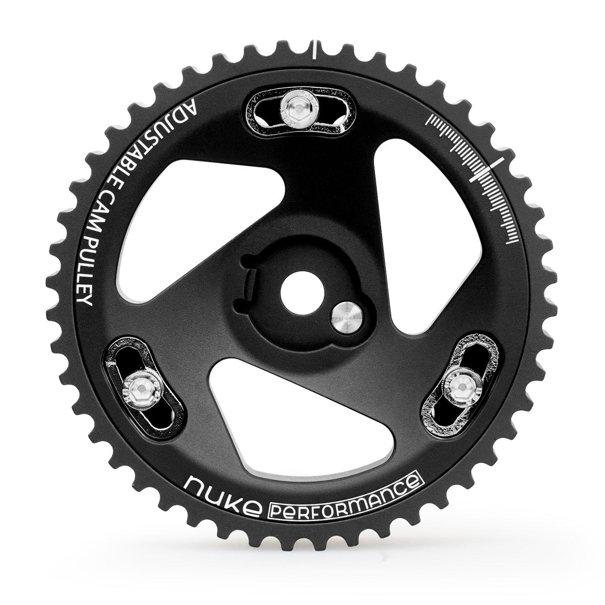 Nuke Performance Adjustable Aluminum Cam Pulley for BMW M20 (E30, E34), precision engineered in Sweden.