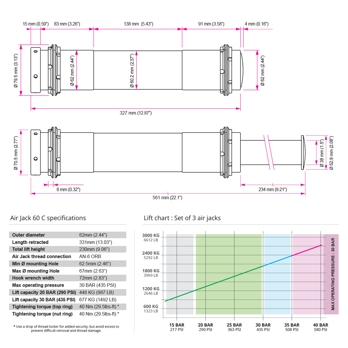 Air Jack 60 C 3pc Set, with Hardline hose kit