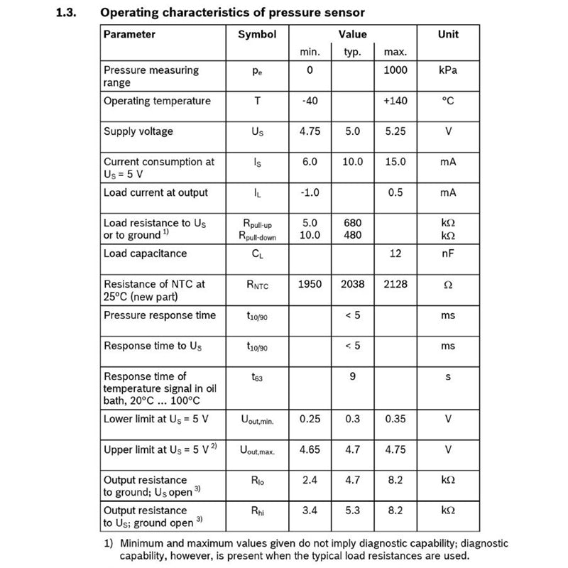 A high-quality pressure and temperature sensor from Bosch, with an M10x1 male thread.A well-known and popular fuel and oil temperature and pressure sensor from Bosch. Not meant to be used on the Nuke Performance FPR100 series, for those regulators, you need a 1/8 NPT thread (available here).Data of temperature sensorSpecified...