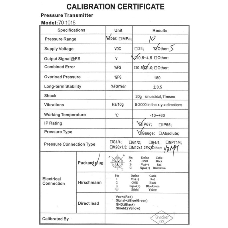 10 BAR (150 PSI) fuel/oil pressure sensor, 1/8 NPT, with connector