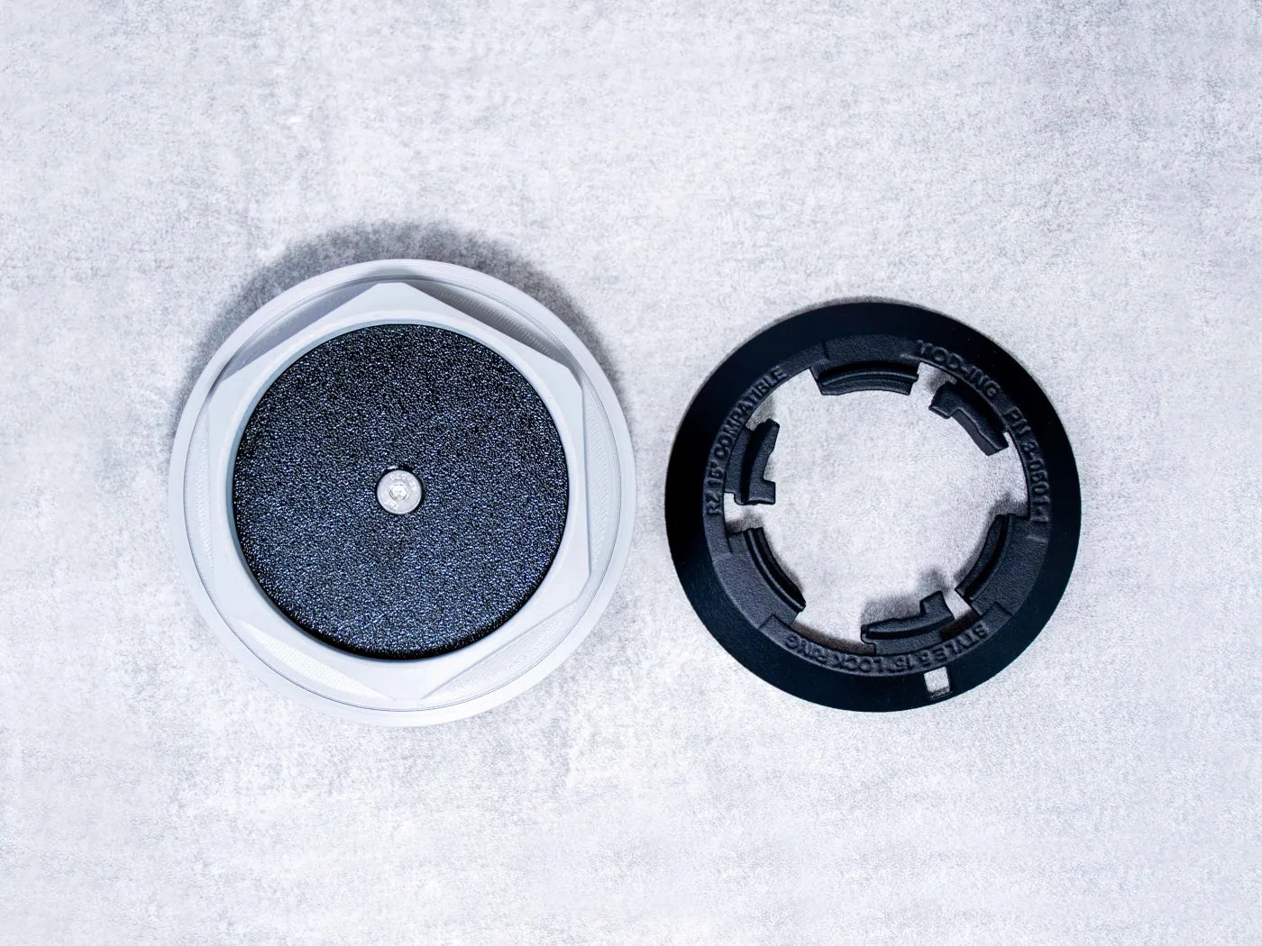 Original BMW e30 style 5 wheels often have broken center caps locking system, either hexagons bottom tabs or black lock ring. These set of hexagon + lock ring allow simple replacement of� worn wheel cap parts. It is recommended to use these hexagons only in combination with our lock rings for the best fitment. The lock rings are made from industrial polymer so they are very durable. The parts are compatible with aluminum BBS waffle plates for style 5 / BBS RS wheels.