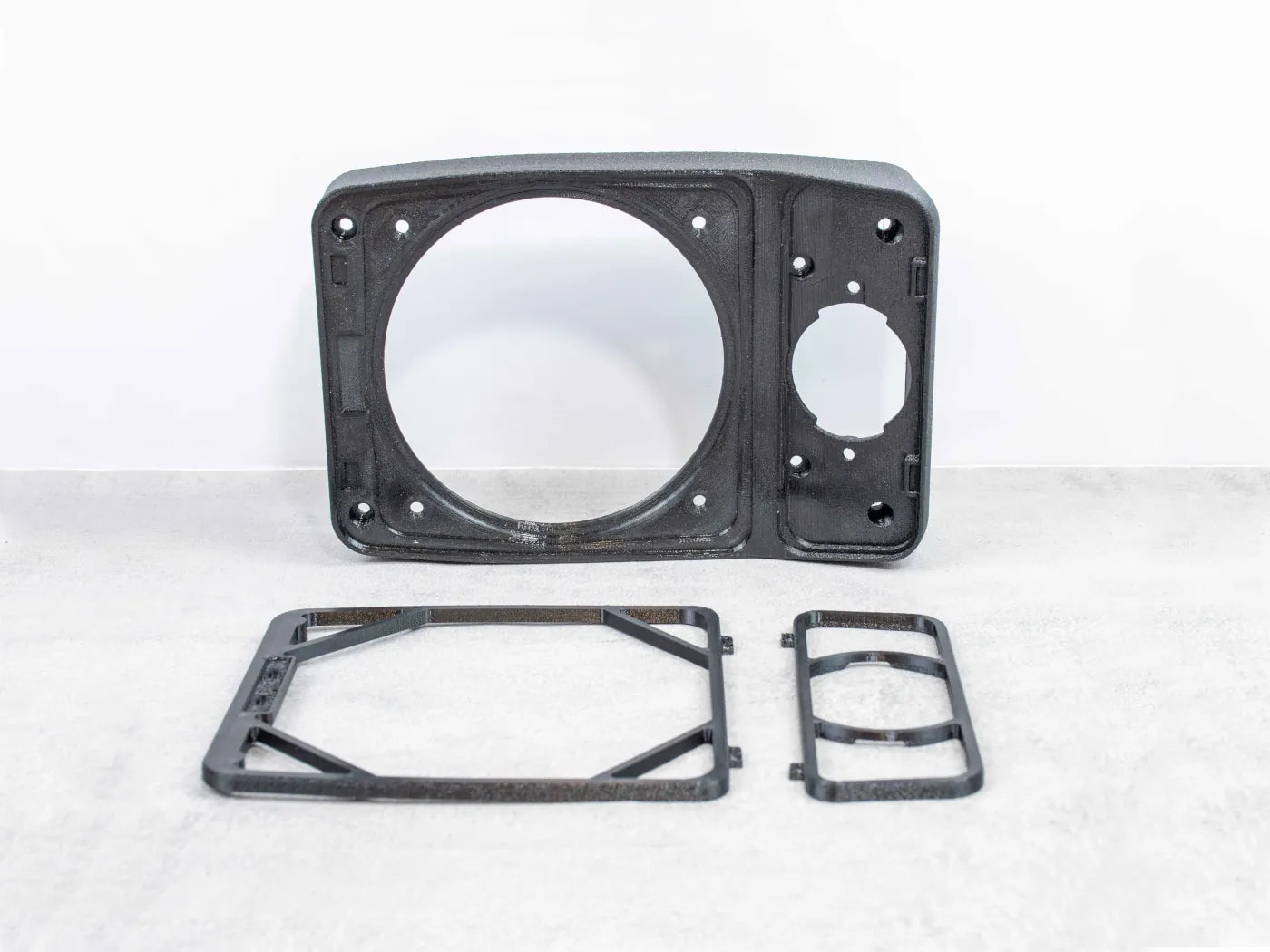 Set of Premium speakers rear trim for BMW e30, e23 and e28. Set includes rear speaker trim with frames for mounting of main loudspeaker as well as tweeter.