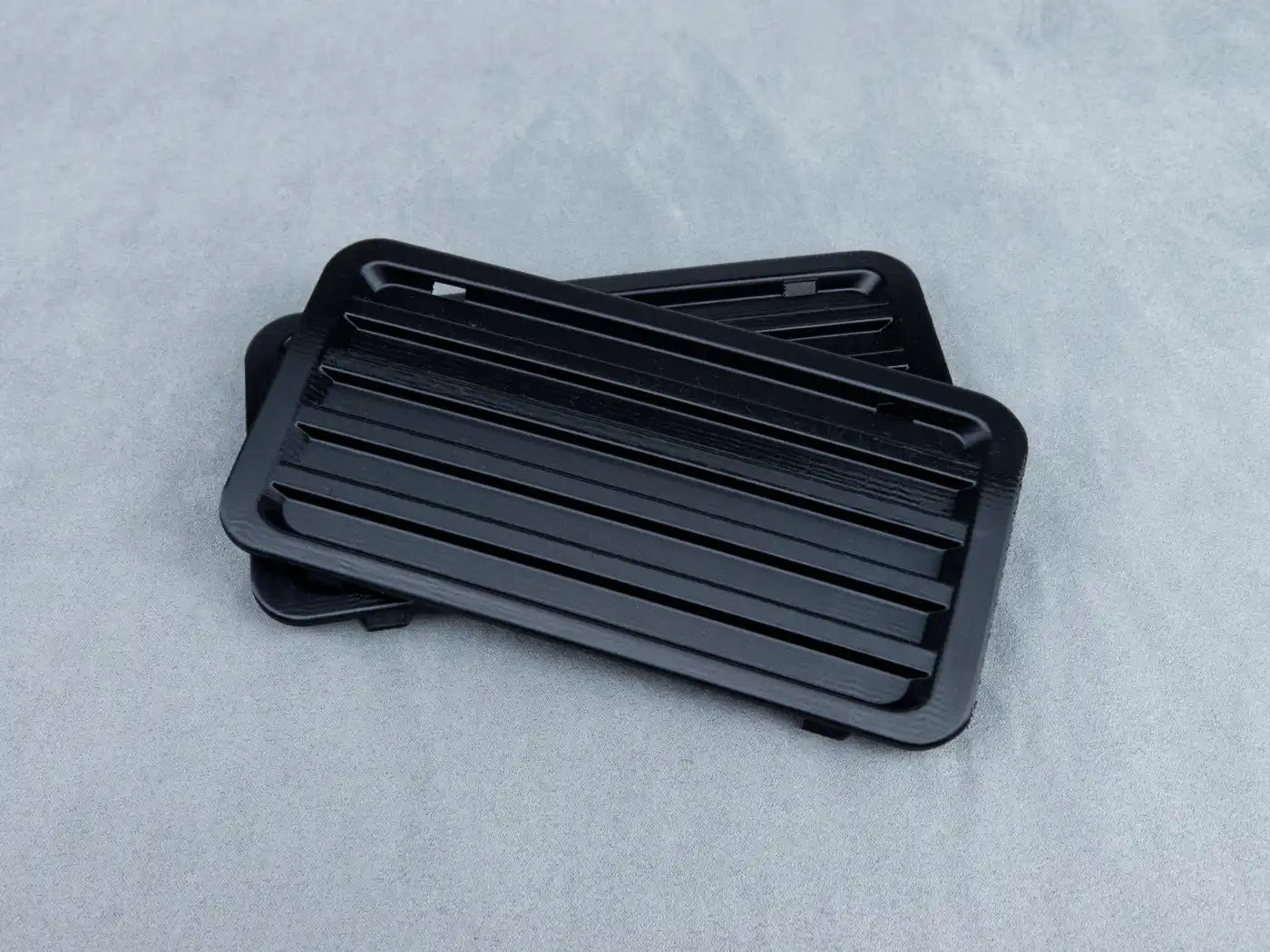 Fog light blank ribbed trims with stripes for early BMW E30 models (1982�1985). These trims are designed as direct replacements for the original fog light covers used on early Type 1 bumpers. Each trim features the characteristic ribbed stripe design specific to the first generation of E30 front bumpers.